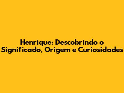 Olá, pessoal! Se você está aqui, provavelmente está curioso sobre o nome Henrique – seja porque está pensando em dar esse nome para seu filho, está pesquisando sobre a história da sua família ou simplesmente adora saber mais sobre nomes e seus significados. Bom, você veio ao lugar certo! Vamos mergulhar fundo no universo de Henrique, explorando suas raízes, o que esse nome representa e algumas curiosidades interessantes que vão te surpreender. Preparem-se para uma jornada fascinante pelo mundo da onomástica! Vamos começar?