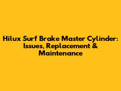 Hilux Surf Brake Master Cylinder: Issues, Replacement & Maintenance