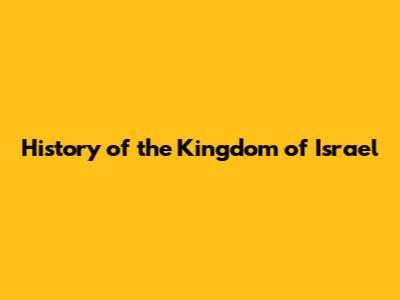 History Of The Kingdom Of Israel