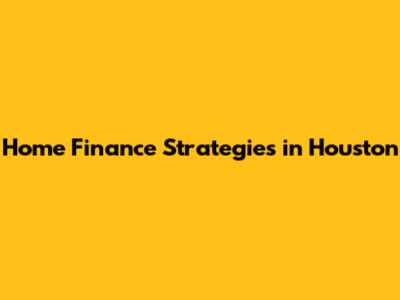 Home Finance Strategies In Houston