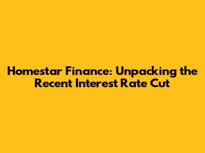 Alright, finance enthusiasts! Let's dive into the nitty-gritty of the recent Homestar Finance interest rate cut. It's the kind of news that gets everyone's attention, from seasoned investors to first-time homebuyers. In this article, we'll break down what this cut actually means, who it impacts, and how you can position yourself to make the most of it. We'll explore the potential benefits for borrowers, the broader economic implications, and, of course, what it all means for your wallet. So, buckle up, grab your favorite beverage, and let's get started. Understanding interest rates can be a bit like navigating a maze, but don't worry, we'll guide you through it. This rate cut could be a golden opportunity for some, but itās crucial to understand the details before making any decisions. We'll cover everything from the immediate effects to the long-term impact, ensuring you have a clear picture of the situation.