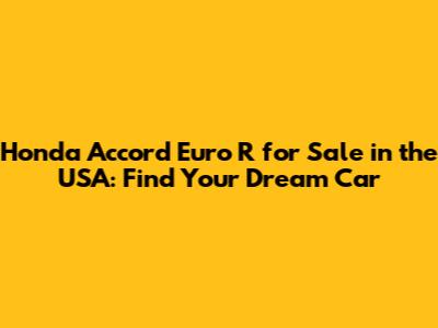 Finding and owning a Honda Accord Euro R in the USA is an exciting journey. With careful research, a keen eye for detail, and a bit of patience, you can find the perfect ride. Happy hunting, and may the JDM gods be ever in your favor!
