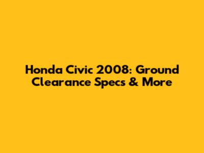 Honda Civic 2008: Ground Clearance Specs & More