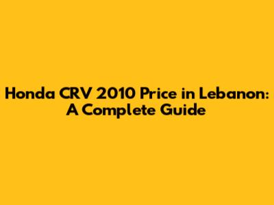 Honda CRV 2010 Price In Lebanon: A Complete Guide