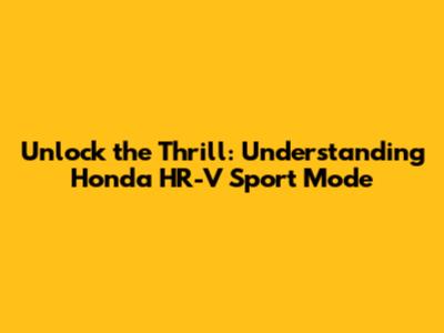 Honda HR-V Sport Mode: Unlock Performance