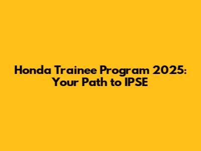 Honda Trainee Program 2025: Your Path To IPSE