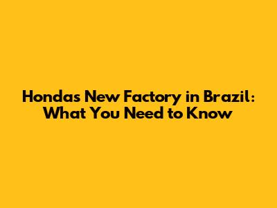 Honda's New Factory In Brazil: What You Need To Know