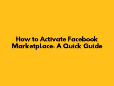 How To Activate Facebook Marketplace: A Quick Guide