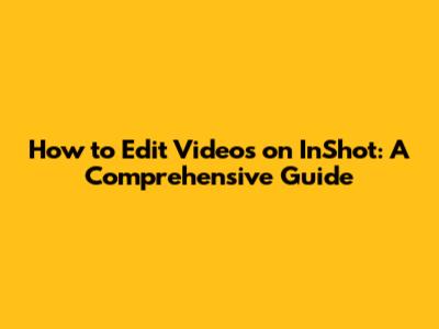 How To Edit Videos On InShot: A Comprehensive Guide