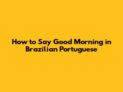 How To Say Good Morning In Brazilian Portuguese