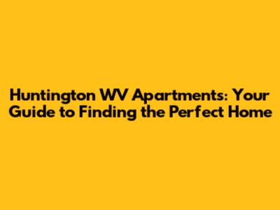 Huntington WV Apartments: Your Guide To Finding The Perfect Home
