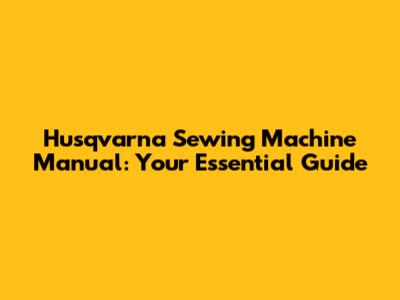 Husqvarna Sewing Machine Manual: Your Comprehensive Guide