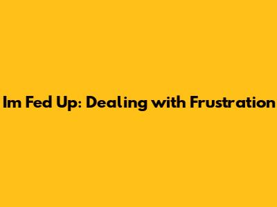 I'm Fed Up: Dealing With Frustration