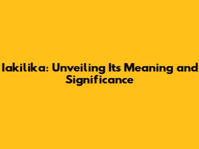 Iakilika: Unveiling Its Meaning And Significance