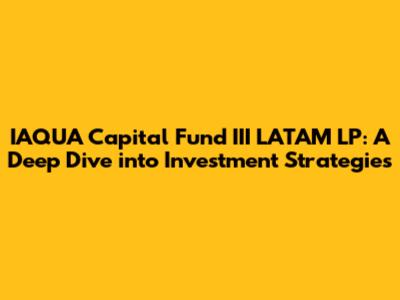 Hey there, finance enthusiasts and investment aficionados! Let's dive deep into the world of IAQUA Capital Fund III LATAM LP, shall we? This isn't just another fund; it's a strategic player in the Latin American investment landscape. We're going to break down everything you need to know, from its core objectives to its investment strategies and the potential impact it's making in the region. Buckle up, because we're about to embark on a comprehensive journey through the ins and outs of this intriguing fund.