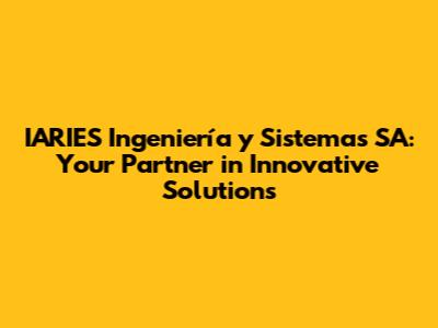 Hey guys! Ever heard of IARIES Ingeniería y Sistemas SA? If you're looking for a company that truly understands the ins and outs of engineering and systems, you've landed in the right place. IARIES isn't just another name; it's a powerhouse of innovation, reliability, and expertise. Let's dive into what makes IARIES stand out and how they can be your go-to partner for all things engineering and systems.