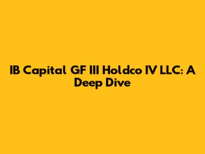 Hey everyone! Let's dive into something that might sound a little complex: IB Capital GF III Holdco IV LLC. Now, I know what you're thinking – that's a mouthful! But don't worry, we're going to break it down and make it super easy to understand. We'll explore what this entity is all about, what it does, and why it's relevant. Think of this as your friendly guide to understanding the ins and outs of IB Capital GF III Holdco IV LLC. Ready to get started, guys?