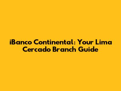 Hey guys! Looking for the iBanco Continental branch in Cercado de Lima? You've come to the right place! This guide will give you everything you need to know to easily find and navigate the iBanco Continental branch in the heart of Lima. We'll cover location details, services offered, and even some handy tips to make your visit smooth and efficient. Whether you're a local resident or just passing through, we're here to help you manage your banking needs with ease. So, let's dive in and explore the world of iBanco Continental in Cercado de Lima!