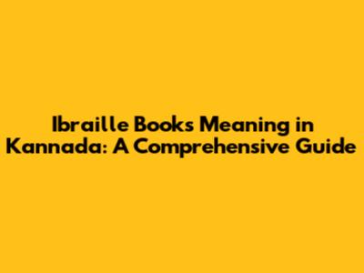 Ibraille Books Meaning In Kannada: A Comprehensive Guide