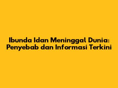Kabar duka mengenai meninggalnya ibunda Idan mengingatkan kita akan kerapuhan hidup dan pentingnya menghargai setiap momen yang kita miliki. Meskipun kita belum mengetahui secara pasti penyebab meninggalnya ibunda Idan, mari kita fokus pada memberikan dukungan kepada keluarga yang ditinggalkan dan mendoakan almarhumah.