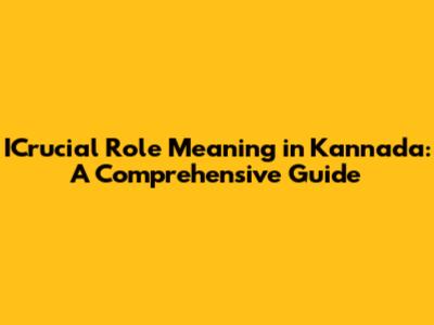 ICrucial Role Meaning In Kannada: A Comprehensive Guide