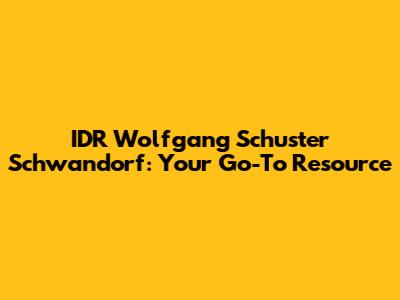 Hey guys! Let's dive into everything you need to know about IDR Wolfgang Schuster Schwandorf. This article is designed to be your comprehensive resource, providing you with all the details in an engaging and conversational way. Whether you're a local resident, a business owner, or just someone curious about this topic, we've got you covered. So, buckle up and let's get started!