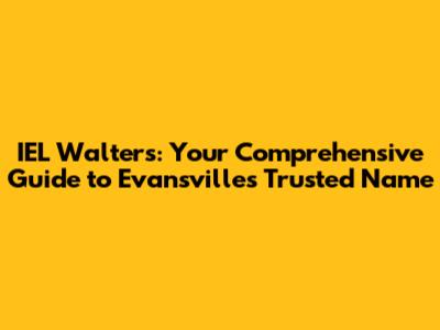 Hey there, folks! Ever heard of IEL Walters in Evansville, Indiana? If you're a local, chances are you've either heard the name or maybe even worked with them. But if you're new to the area, or just curious about what this company is all about, you've come to the right place. I'm going to break down everything you need to know about IEL Walters, from what they do to why they're a respected name in the Evansville community. Ready to dive in? Let's go!