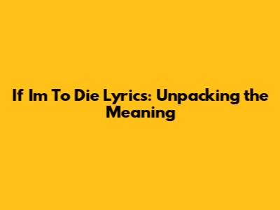 If I'm To Die Lyrics: Unpacking The Meaning