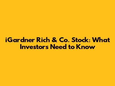 IGardner Rich & Co. Stock: What Investors Need To Know
