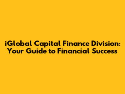 IGlobal Capital Finance Division: Your Guide To Financial Success