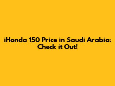 IHonda 150 Price In Saudi Arabia: Check It Out!
