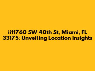 Hey guys! Ever find yourself needing to know more about a specific address? Today, we're diving deep into ii11760 SW 40th St, Miami, FL 33175. This isn't just a random string of numbers and letters; it's a gateway to understanding a particular place in the vibrant city of Miami. Whether you're a potential resident, a curious investor, or just someone trying to get the lay of the land, stick around as we uncover everything you need to know about this location. From its geographical coordinates to nearby amenities and local vibes, we've got you covered. Understanding a location involves more than just plugging the address into a map. It requires a comprehensive look at its surroundings, accessibility, and the overall atmosphere. So, let's get started and explore what makes ii11760 SW 40th St a unique spot in Miami.