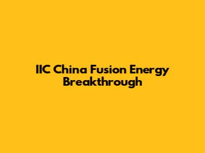 IIC China Achieves Fusion Energy Breakthrough