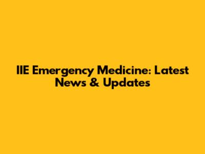 IIE Emergency Medicine: Latest News & Updates