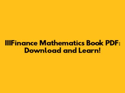 IIIFinance Math Book PDF: Download And Learn!