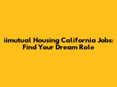 Iimutual Housing California Jobs: Find Your Dream Role