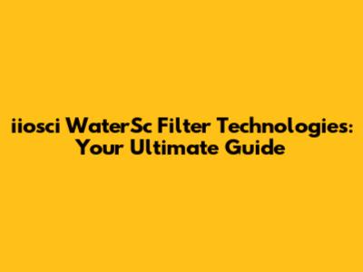 Iiosci WaterSc Filter Technologies: Your Guide