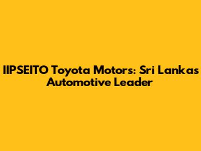 IIPSEITO Toyota Motors: Sri Lanka's Automotive Leader