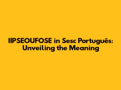 IIPSEOUFOSE In Sesc Português: Unveiling The Meaning
