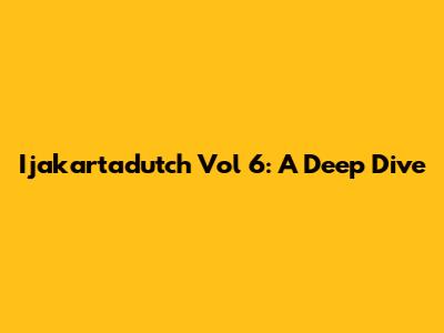 Ijakartadutch Vol 6: A Deep Dive