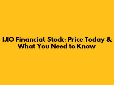 IJIO Financial Stock: Price Today & What You Need To Know