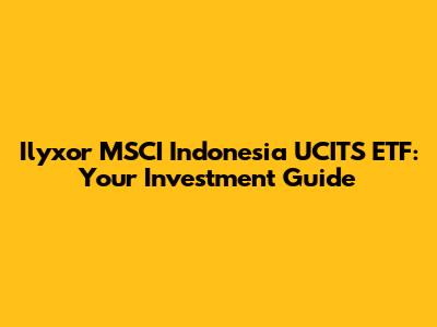 Hey guys! Ever heard of the Ilyxor MSCI Indonesia UCITS ETF and wondered if it's the right investment vehicle for you? Well, you've come to the right place! This guide breaks down everything you need to know, from the ETF's objectives to its performance, and even its pros and cons. Let's dive in!