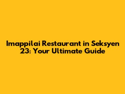 Imappilai Restaurant In Seksyen 23: Your Ultimate Guide
