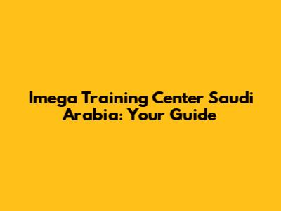 Imega Training Center Saudi Arabia: Your Guide