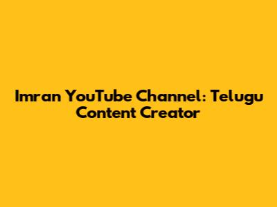Imran YouTube Channel: Telugu Content Creator