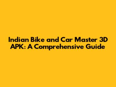 Indian Bike And Car Master 3D APK: A Comprehensive Guide