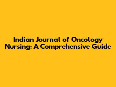 Indian Journal Of Oncology Nursing: A Comprehensive Guide