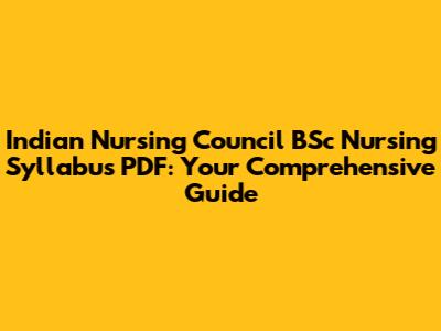 Indian Nursing Council BSc Nursing Syllabus PDF: Your Guide