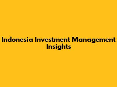 Indonesia Investment Management Insights