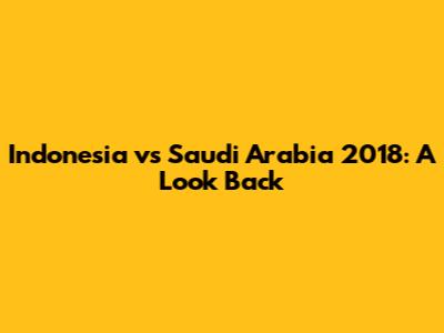 Indonesia Vs Saudi Arabia 2018: A Look Back